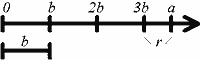 ( a = 3b+r ) Рис. 1 Тогда, очевидно, 0 Ј r < | b |. Докажем единственность такого представления. Ну пусть а = bq + r и а = bq 1 + r 1 — два таких представления. Значит 0 = а – а = b ( q – q 1 ) + ( r – r 1 ). Здесь 0 делится на b ; b ( q – q 1 ) делится на b , следовательно ( r – r 1 ) обязано делиться на b . Так как 0 Ј r < b и 0 Ј r 1 < b , то r – r 1 < b и r – r 1 делится на b , значит r – r 1 равно нулю, а, значит и q — q 1 равно нулю, т. е. два таких представления совпадают. Ё Сразу после доказательства теоремы, пока не забылись использовавшиеся в нем обозначения, дадим Определение. Число q называется неполным частным, а число r — остатком от деления а на b . Признаюсь, что идея рисунка 1, поясняющего доказательство теоремы, принадлежит не мне, а древним грекам, которые, впрочем, не знали, что они древние. Именно древние греки, почему-то, очень любили многократно укладывать один отрезок в другой, а оставшуюся часть большего отрезка, естественно, называли “остатком”. ![]() Заметим, дорогие читатели, что остаток — всегда есть число неотрицательное, а вот неполное частное может быть каким угодно целым числом. Поэтому на вопрос: “Сколько будет минус пять поделить на три с остатком?”, каждый должен бойко отвечать: “Минус два, в остатке — один!”. Но за добрый десяток лет опыта приема устных вступительных экзаменов в университет, судьба еще не послала мне абитуриента, правильно ответившего на этот вопрос. А ведь это дети, специально готовившие себя поступать именно на математико-механический факультет. “Печально я гляжу на наше поколение...”