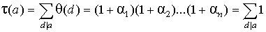 - сумма всех делителей числа a . По лемме 2 пункта 13, сумма всех делителей есть мультипликативная функция. Численный примерчик.