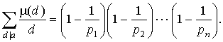 Пример 3. Функция Мебиуса. Функция Мебиуса m ( a ) - это мультипликативная функция, определяемая следующим образом: если p - простое число, то m ( p ) = -1; m ( p a ) = 0, при a > 1; на остальных натуральных числах функция доопределяется по мультипликативности. ![]() Таким образом, если число a делится на квадрат натурального числа, отличный от единицы, то m ( a ) = 0; если же a = p 1 p 2· · · p n (теоретик-числовик сказал бы на своем жаргоне: "если a свободно от квадратов"), то m ( a ) = (-1) k , где k - число различных простых делителей a . Понятно, что m (1) = (-1) 0 = 1, как и должно быть. Лемма 1. Пусть q ( a ) - произвольная мультипликативная функция,