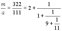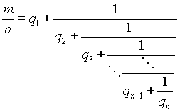 Эта цепная дробь, разумеется, конечна, так как m/a - рациональное число. Рассмотрим две ее последние подходящие дроби: