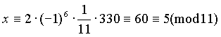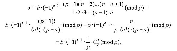 которое нужно почленно поделить на взаимно простое с модулем число 1 Ч 2 Ч 3 Ч ... Ч a-1 . Ё Пример. Решить сравнение 7x є 2(mod 11) . Вычисляем: