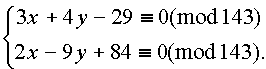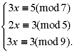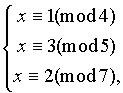 которая, очевидно, в свою очередь, равносильна одному сравнению x є x 0 (mod m 1 m 2 ...m k ) . Ё Пример. Однажды средний товарищ подошел к умному товарищу и попросил его найти число, которое при делении на 4 дает в остатке 1, при делении на 5 дает в остатке 3, а при делении на 7 дает в остатке 2. Сам средний товарищ искал такое число уже две недели. Умный товарищ тут же составил систему: