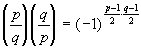 будет четным при k =1 и k =7 , то 2 будет квадратичным вычетом по модулю р , если р вида 8 n +1 или 8 n +7 . Если же р вида 8 n +3 или 8 n +5 , то 2 будет квадратичным невычетом. Теорема (Закон взаимности квадратичных вычетов). Если p и q - нечетные простые числа, то