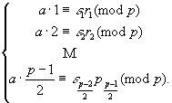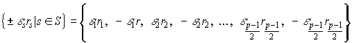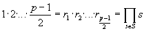положительные же из них, т.е. r 1 , r 2 ,…, r ( p -1)/2 , совпадают с числами 1,2,…,( p -1)/2, т.е. образуют множество S . Перемножим теперь почленно сравнения (*) и сократим произведение на