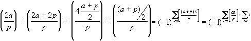 Преобразуем это равенство (помним, что а + р – четное, а квадратичный множитель из числителя символа Лежандра можно отбрасывать):