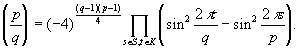 где K ={1,2,…( q -1)/2}. Меняя роли q и р , точно так же получим: