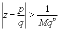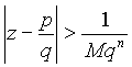 при всех целых р и q, q>0. Доказательство. Пусть f(x) - тот самый многочлен степени n с целыми коэффициентами, для которого f(z)=0. Поскольку производная f '(x) многочлена f(x) есть функция если не глупая, то уж точно ограниченная на отрезке |z-x|Ј1, то найдется такое натуральное число М , что |f '(x)|ЈM для всех х из отрезка |z-x|Ј1. По теореме о среднем значении: |f(x)|=|f(z)-f(x)|ЈMЧ|z-x|. Возьмем теперь любые два целых числа р и q, q>0 и вспомним, что нужно показать