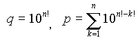 Итак, z опять-таки окажется числом Лиувилля, как только я приведу пример достаточно быстро возрастающей последовательности q1<q2<...<qs<... неполных частных. Нужно, чтобы qs+1іQss-2. Положим q1=0, q2=1, и начнем заполнять стандартную таблицу, вычисляя Qs через уже вычисленные qsи qs-1, а затем ставя на место qs+1 число Qss-2: