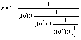 так как nЧn!<(n+1)!=(n+1)Чn!. Итак, z - число Лиувилля. ![]() Пример 2 (с помощью цепной дроби). Пусть